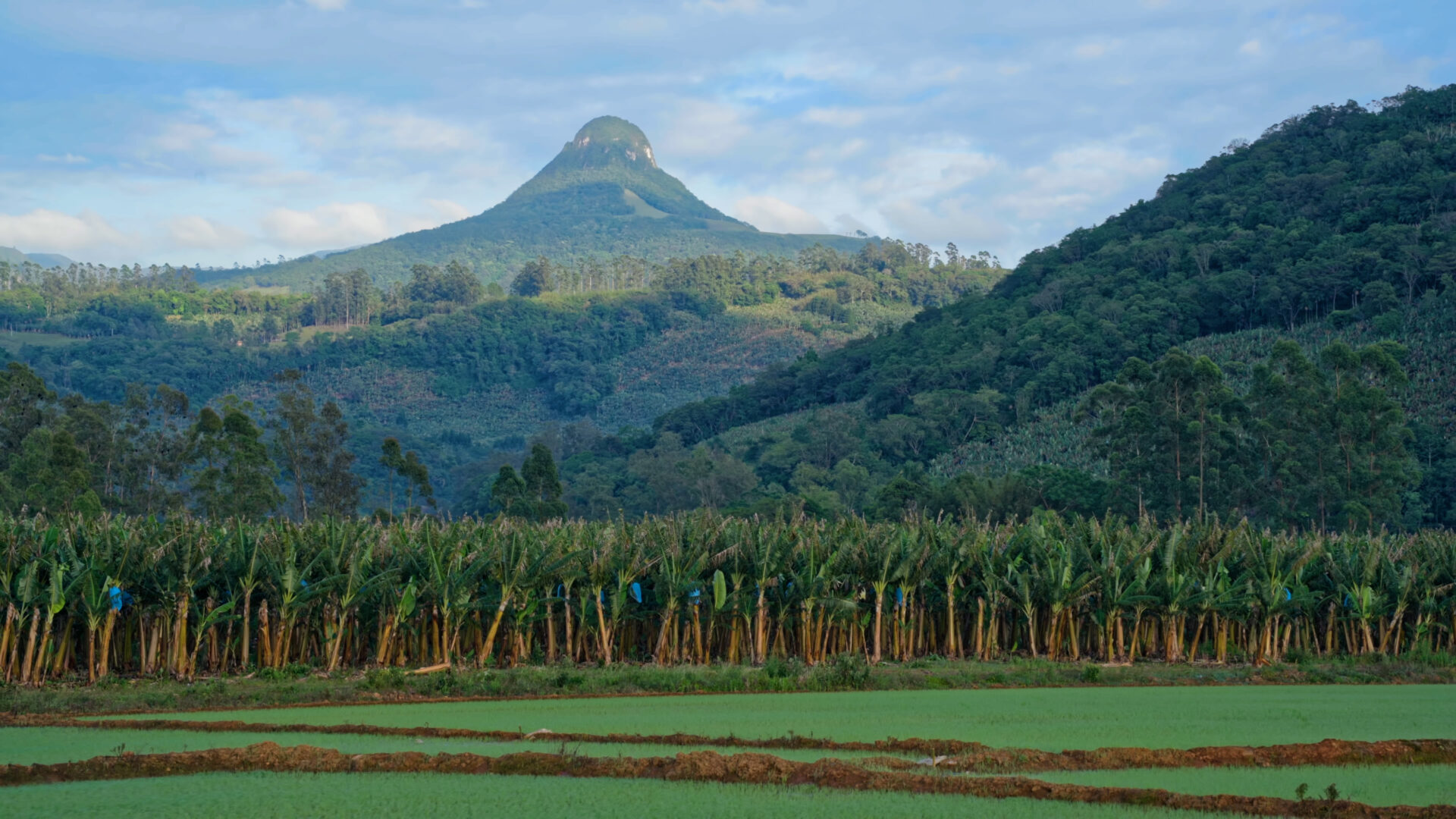 A banana não é apenas uma fruta por aqui, é o sustento de boa parte das famílias e parte do imaginário local. O município está entre os principais produtores do Rio Grande do Sul, e o cultivo dita o ritmo de trabalho e de vida. Do plantio à colheita, passando pela secagem e transformação em produtos derivados, tudo gira em torno dela.